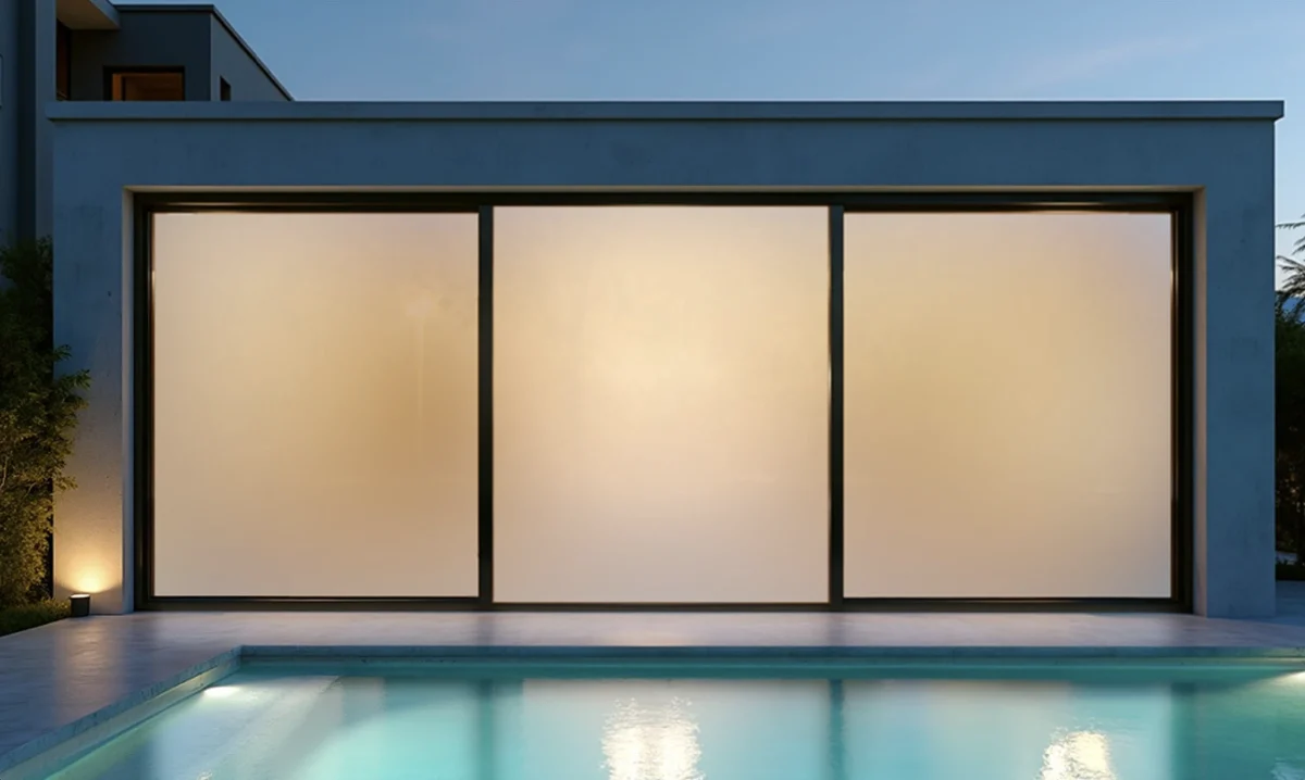 - Elektrochrominis stiklas: naudojant nedidelę elektros srovę, tampa nuo skaidraus iki nepermatomo.